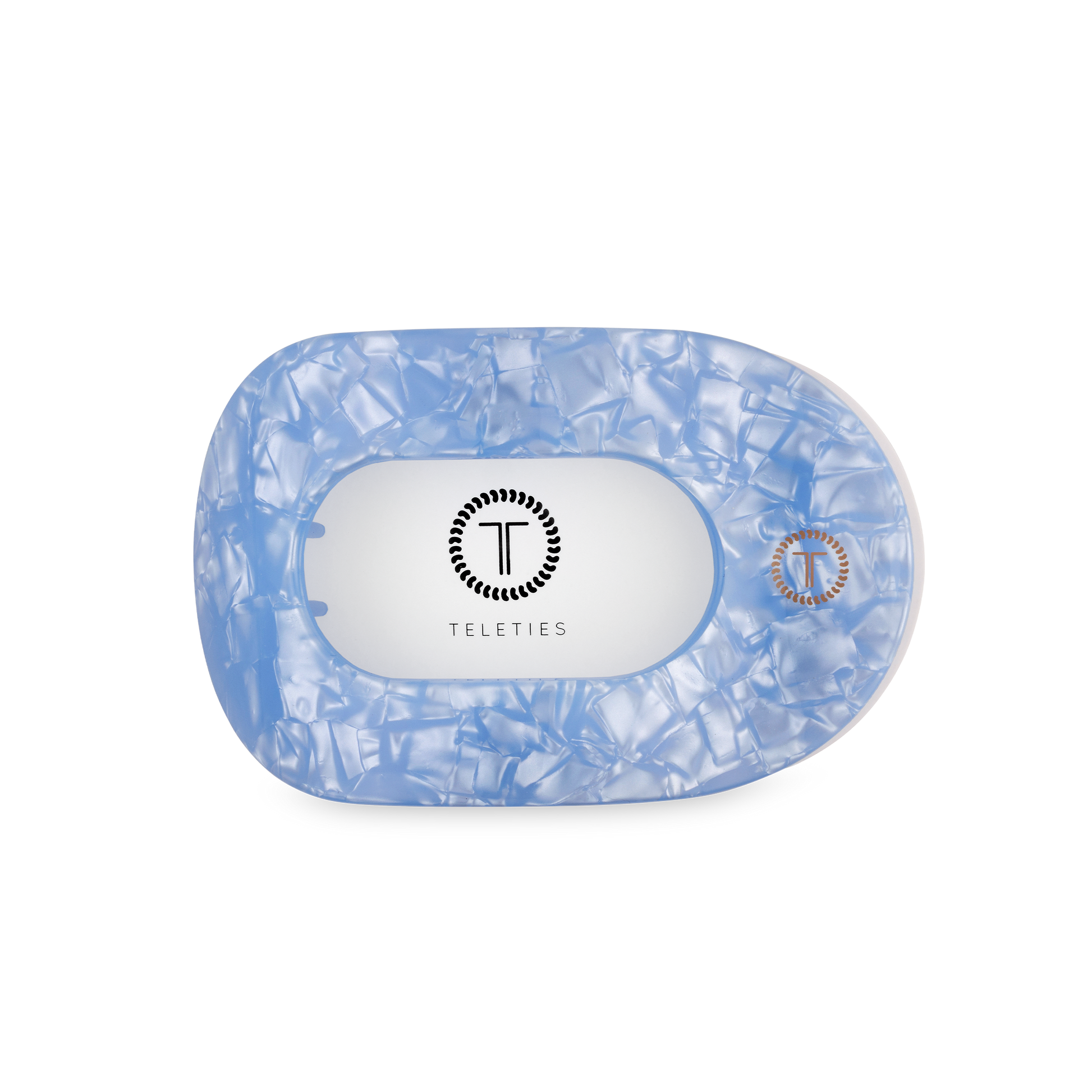Lay flat and relax with the new TELETIES Blue Lagoon Medium Flat Round Hair Clip in Blue. This hair clip is designed to allow you to lay back flat, do yoga, or sit comfortably in a seat with a headrest, and it is made with the same material that is nearly unbreakable.