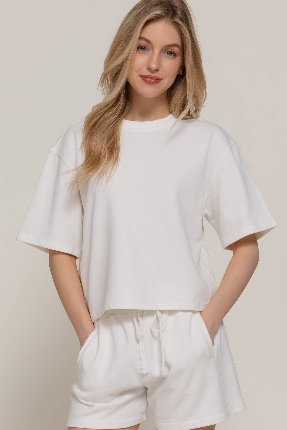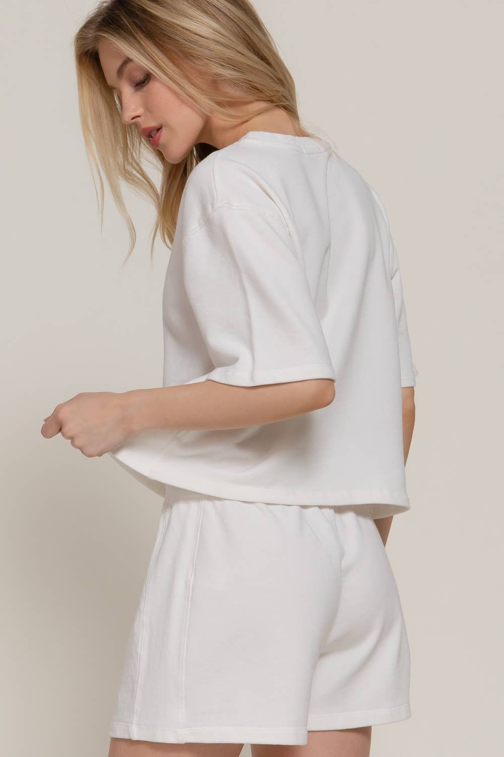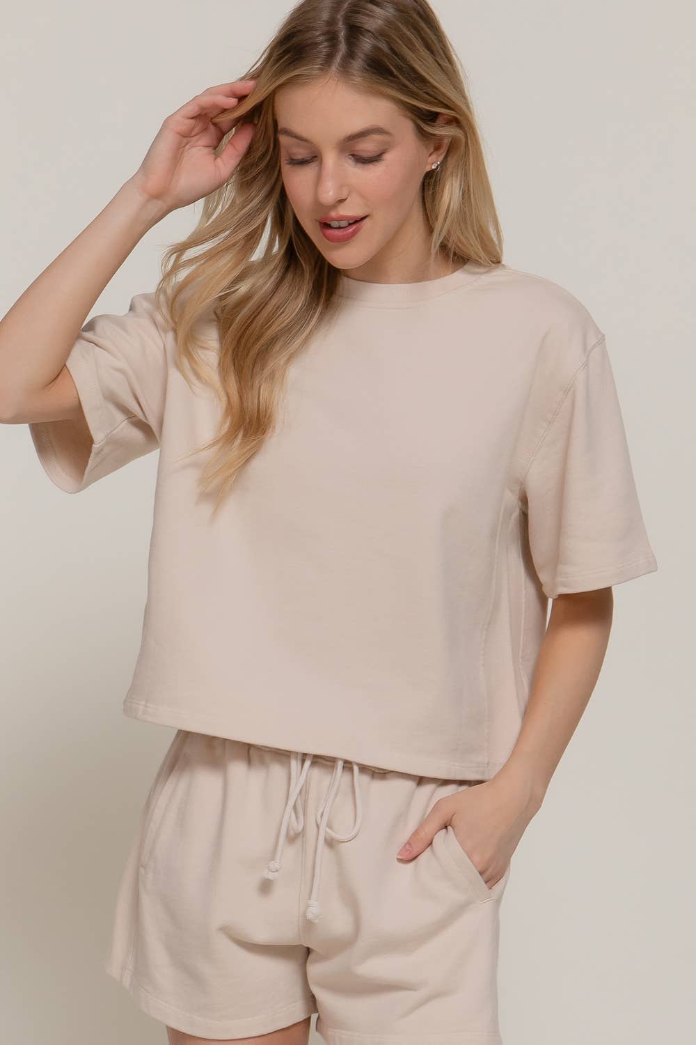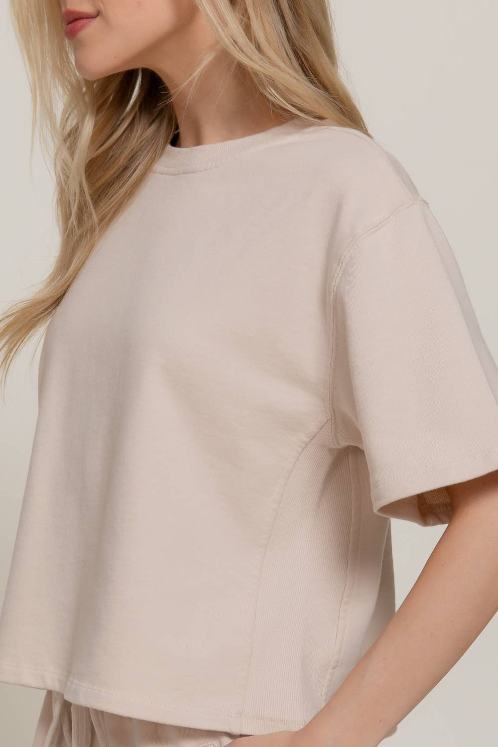 SHORT DOLMAN SLEEVE ROUND NECK GARMENT WASHED TERRY TOP FABRIC: WASHED FRENCH TERRY 80% COTTON 20% POLYESTER