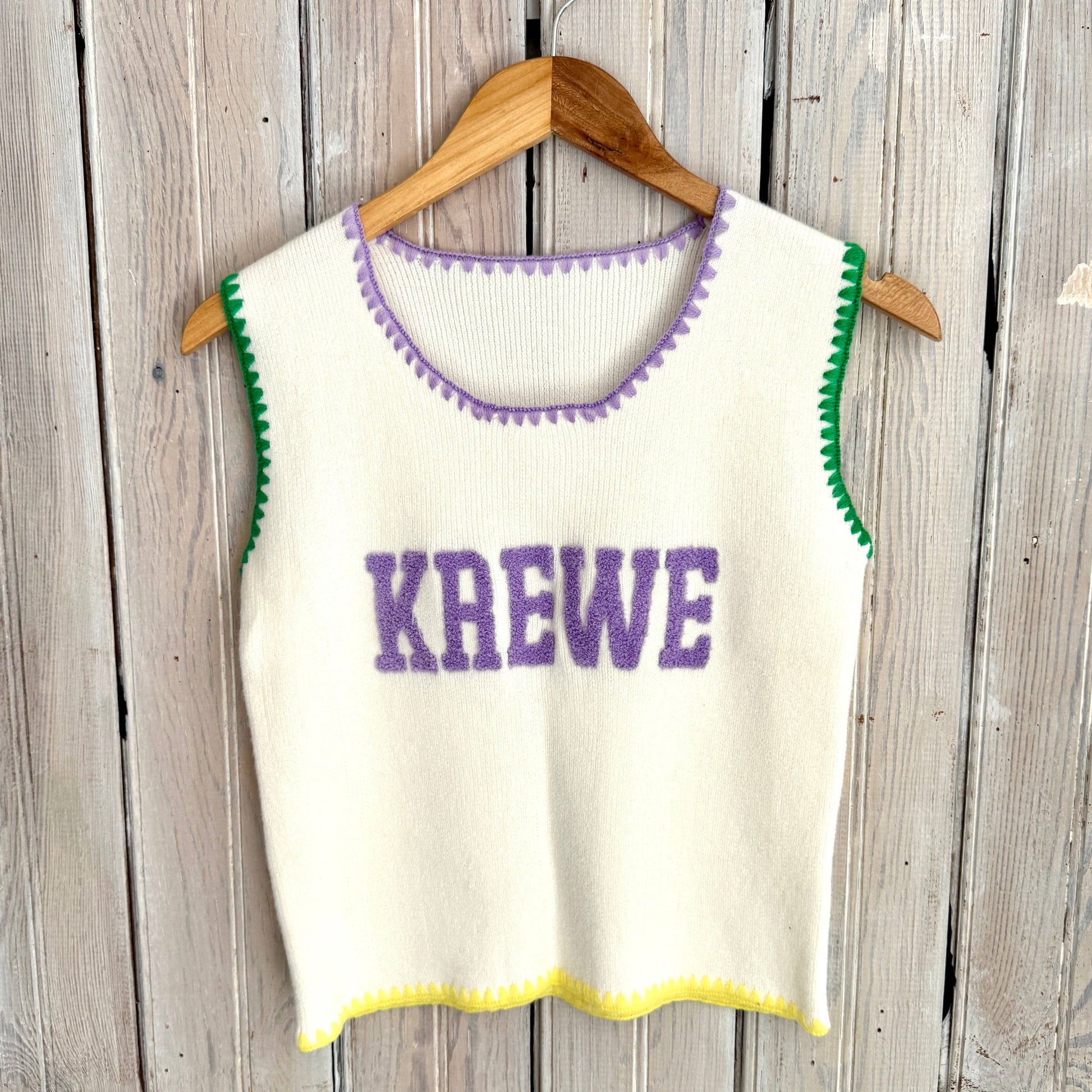 Celebrate in comfort and style with the Mardi Gras Chenille Knit Tank. Made from a super-soft knit fabric, this tank features bold chenille lettering that adds texture and festive flair. Lightweight and easy to wear, it’s perfect for layering or wearing solo—whether you’re heading to a parade, party, or casual Mardi Gras celebration.