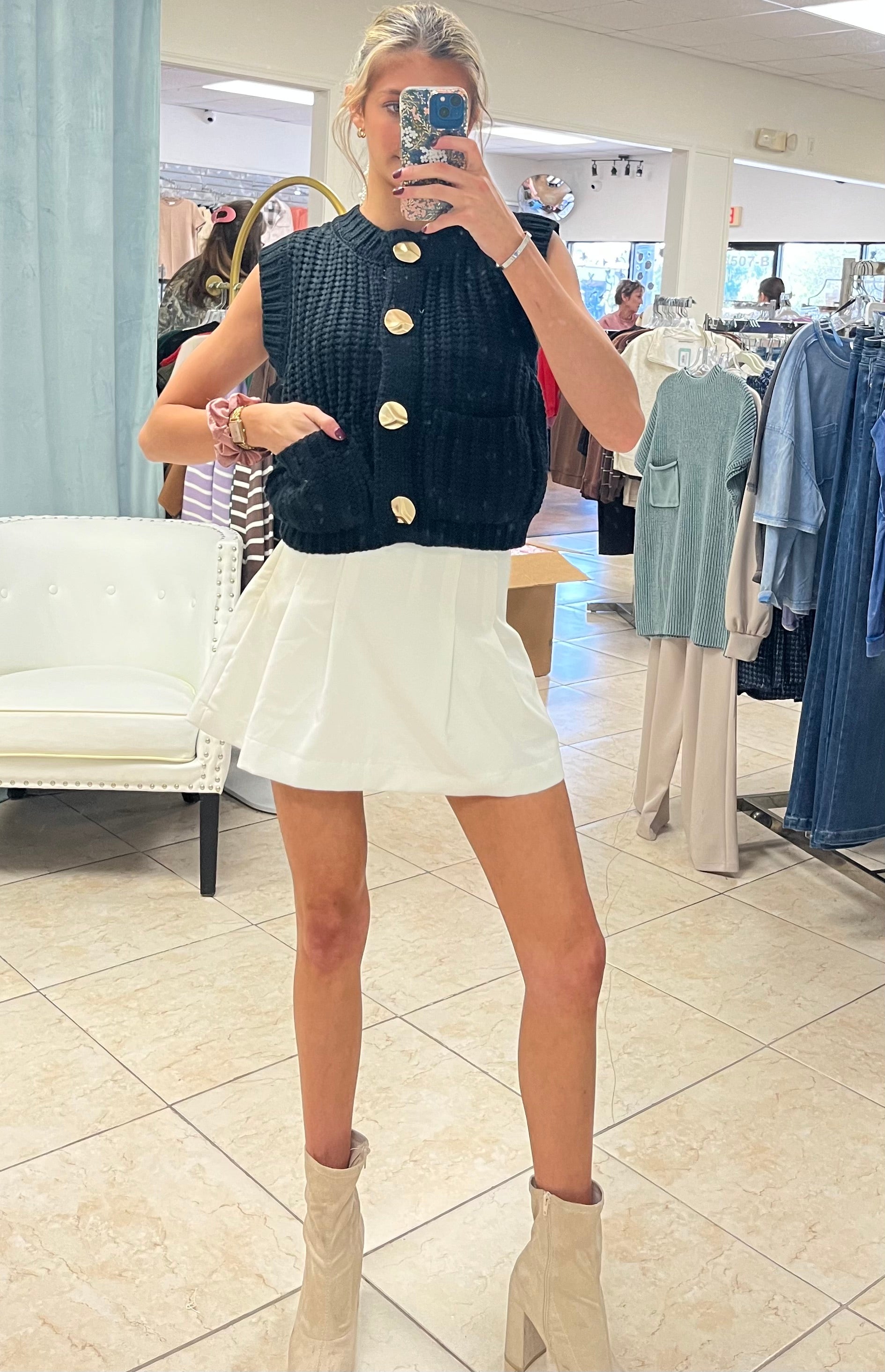 Stay cozy and chic in our Dream Knit Vest. This sleeveless chunky-knit piece features oversized gold buttons for a touch of glam and a rich hue that’s perfect for fall layering. Pair it with denim for a casual daytime look or style it over a crisp white shirt for an elevated vibe.