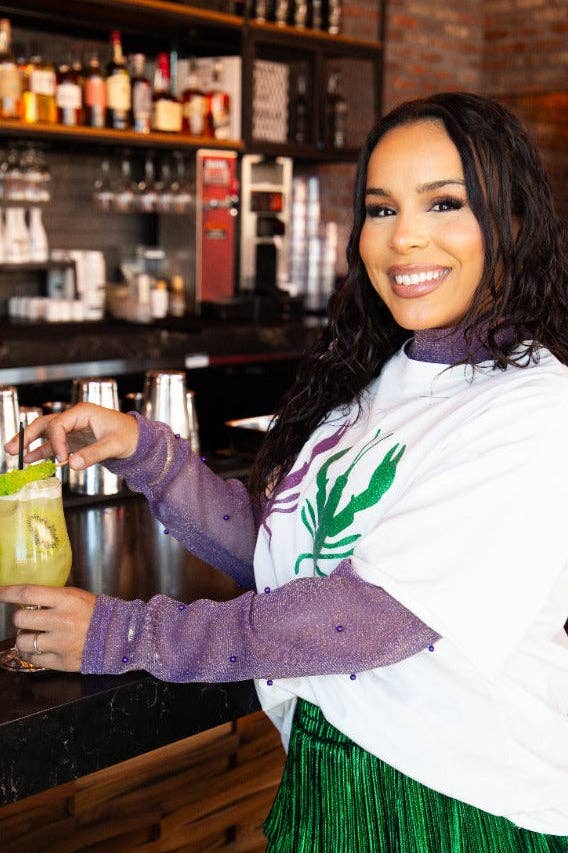 Add a little shimmer to your look with our Mock Neck Mesh Top, Purple Shimmer. This stunning statement piece features a lightweight, see-through mesh design with subtle sparkle and dainty beaded accents for a touch of glam. The mock neckline and long sleeves make it perfect for layering over camisoles or under dresses and graphic tees. Whether you're styling it for a night out, concert, or festive event, this top brings the perfect blend of elegance and edge.
