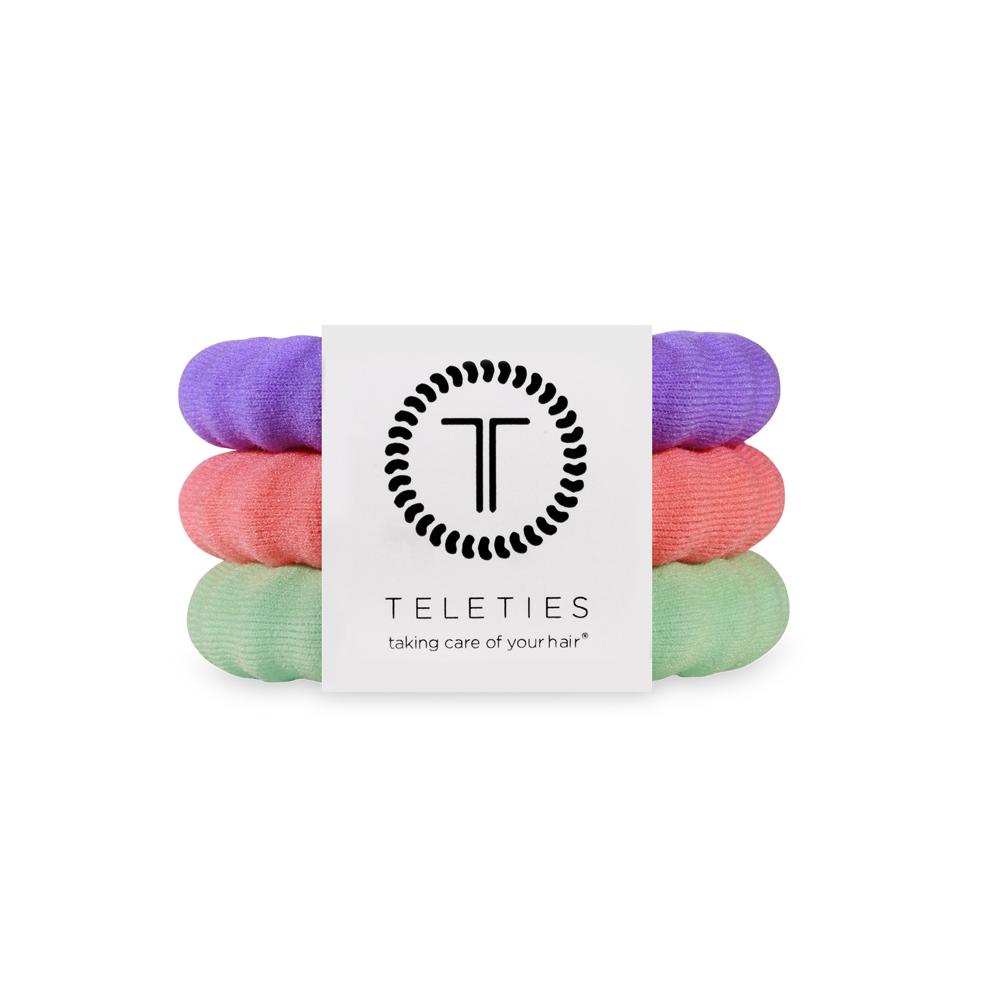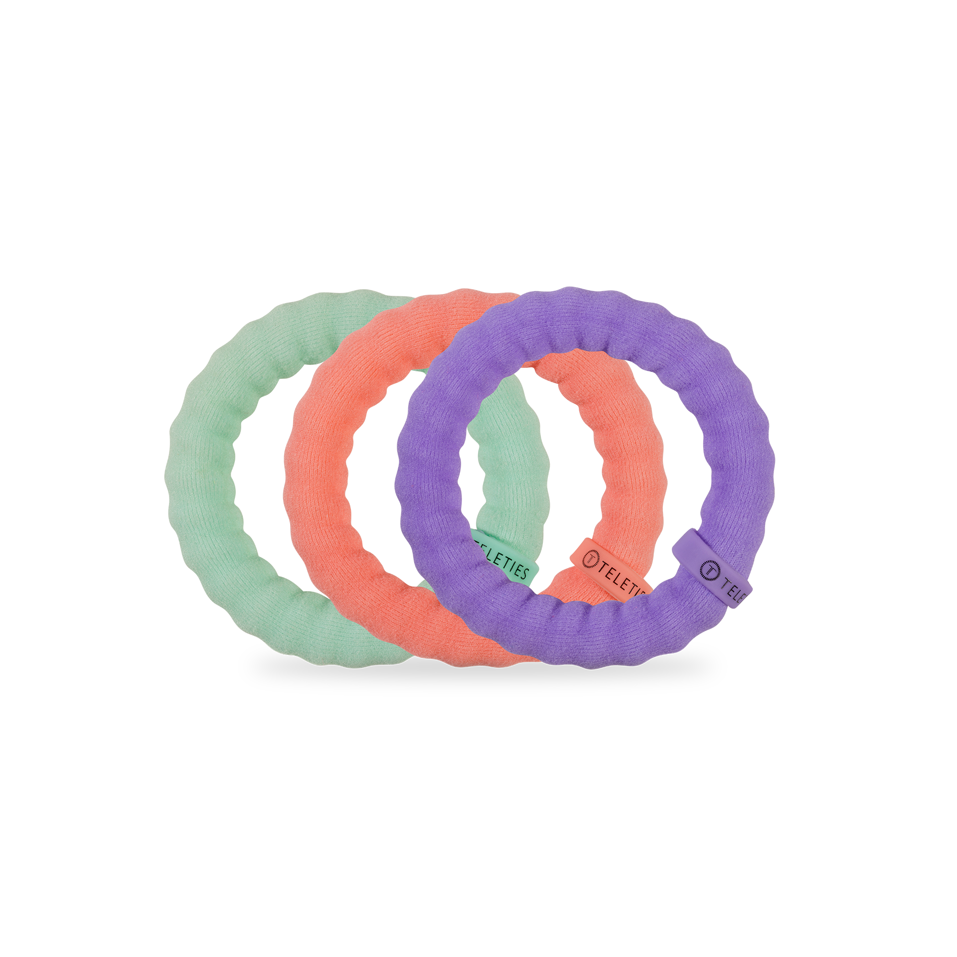 Color Rush Large Nylon Hair Ties are the same game-changing TELETIES coil hair ties, now wrapped in soft nylon for added comfort and curl confidence. These fabric hair ties work great with all hair types, but were made specifically with curly and textured hair in mind. All-day hold on curly, coily, thick, and textured hair Reduces creases & headaches Splash-resistant and dries quickly, perfect for workouts and active lifestyles Moisture-resistant to maintain natural oils Sold in packs of three