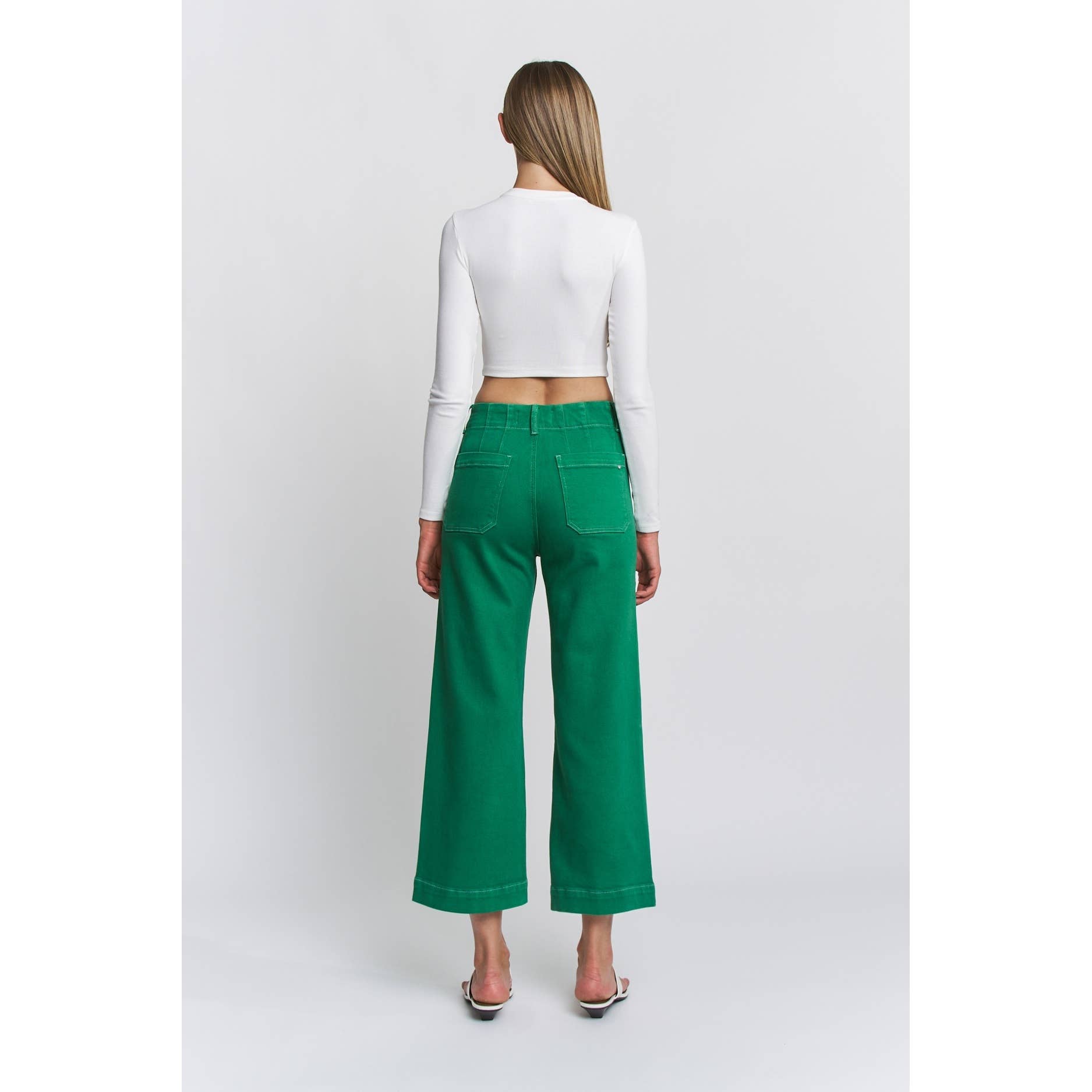 The Super High Rise Wide Leg Cropped Pants in Green deliver a bold yet wearable statement. Designed with a flattering super high rise and a relaxed wide-leg silhouette, these cropped pants offer effortless style with all-day comfort. The vibrant green hue adds a fresh pop of color, making them easy to pair with fitted tops, blouses, or lightweight knits for a polished, modern look.