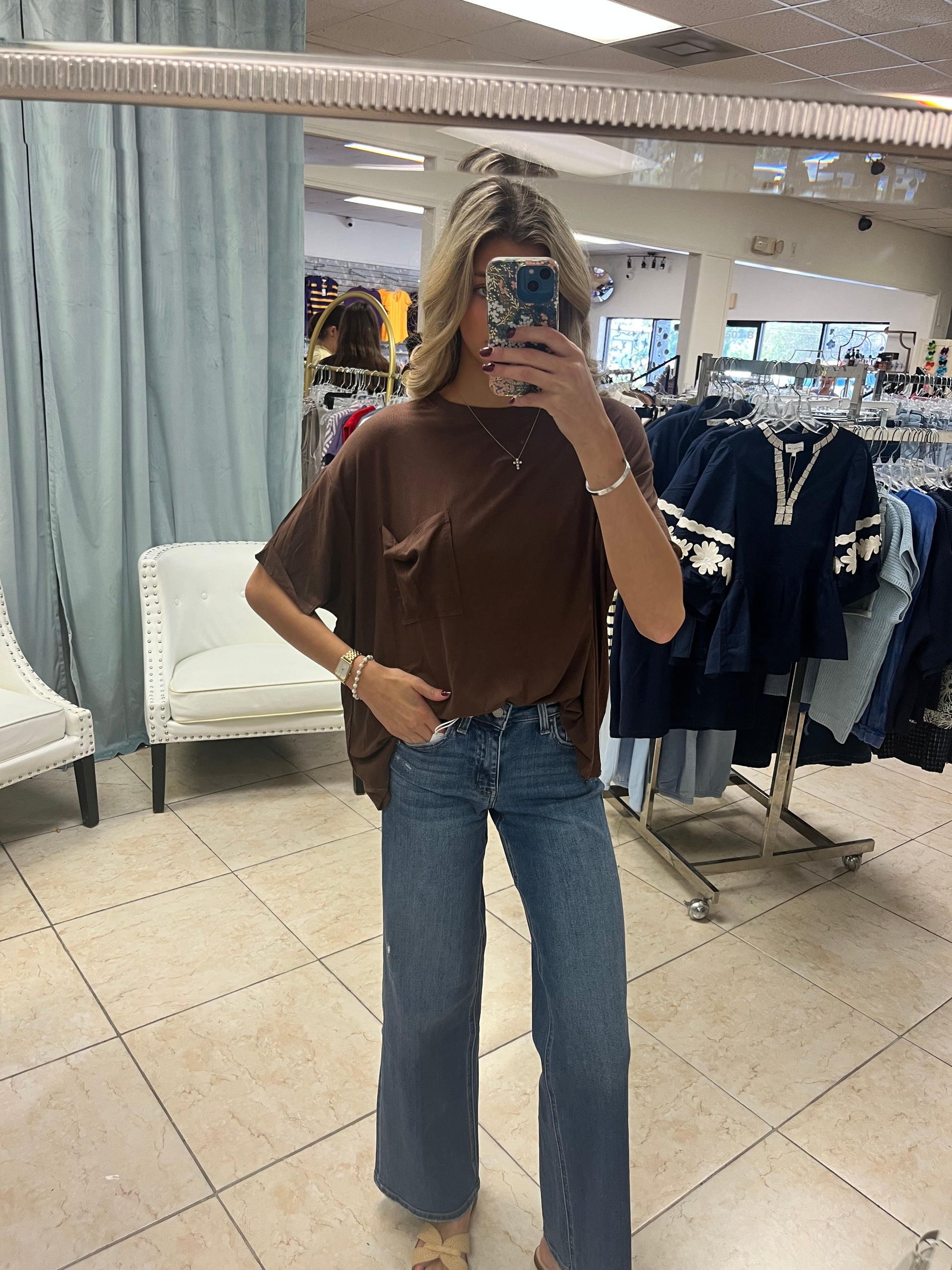 The Easy Sunday Pocket Tee is your go-to for relaxed, effortless style. Designed with an oversized fit and flowy drape, this tee features a front pocket detail that adds a casual, laid-back touch. Soft, lightweight fabric makes it perfect for everyday wear—whether you’re dressing it up with jeans and wedges or keeping it simple with your favorite lounge pants.