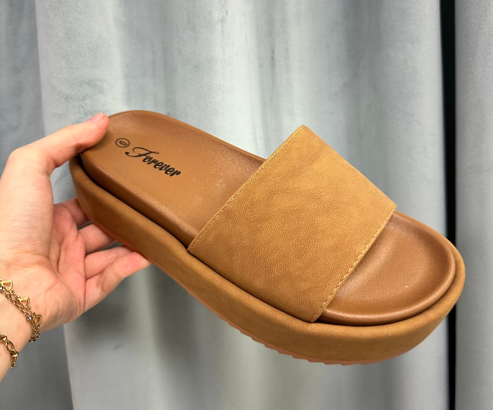 Effortless comfort meets modern minimalism in The Honey Drift Slide. Designed with a soft faux-leather strap and cushioned platform sole, this sandal brings easygoing style to every step. Its warm caramel tone pairs perfectly with summer neutrals, denim, or casual dresses — ideal for on-the-go days when you want comfort without sacrificing style. Simple, sleek, and oh-so versatile!