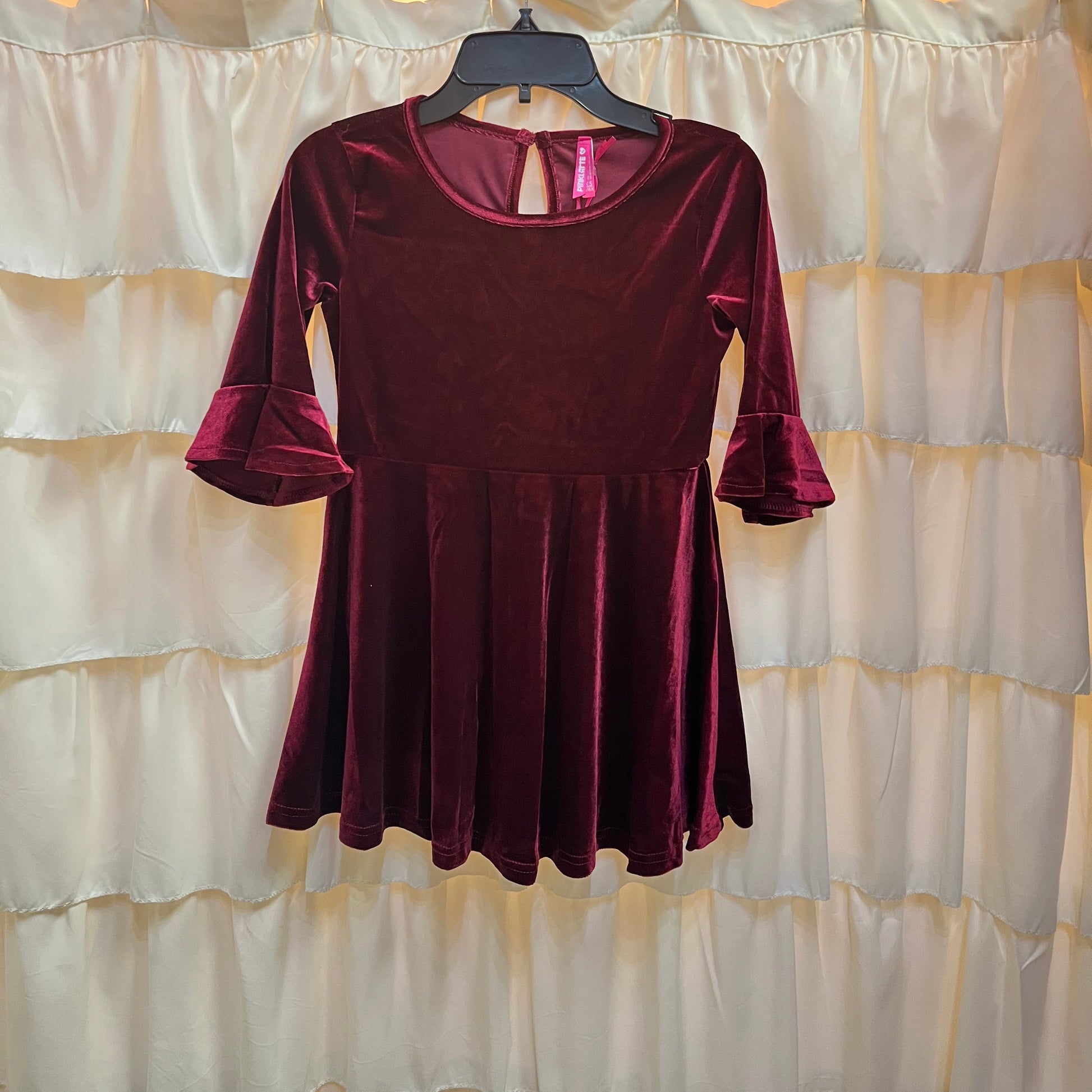 The Velvet Ruffle Sleeve Dress is a timeless and elegant piece designed for any special occasion. Crafted from soft, luxe velvet, this dress features charming ruffled bell sleeves and a flattering fit-and-flare silhouette. The keyhole button closure at the back adds a sweet, classic touch, while the stretchy, comfortable fabric ensures easy movement for your little one.