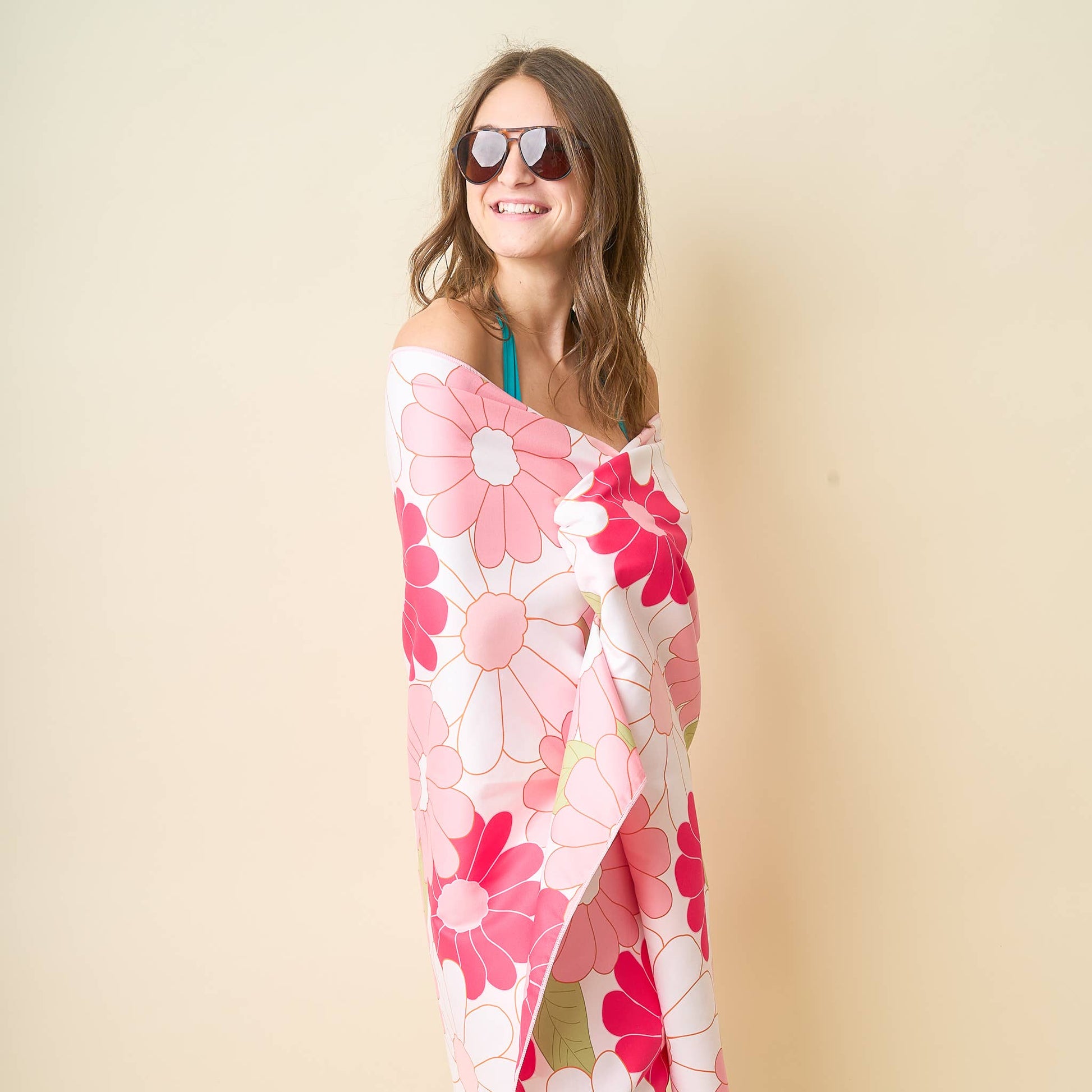 XL Quick-Dry Beach Towel-Daisy Craze Hot Pink
